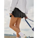 THE LOOK: Faux leather with pleating. Active-chic.