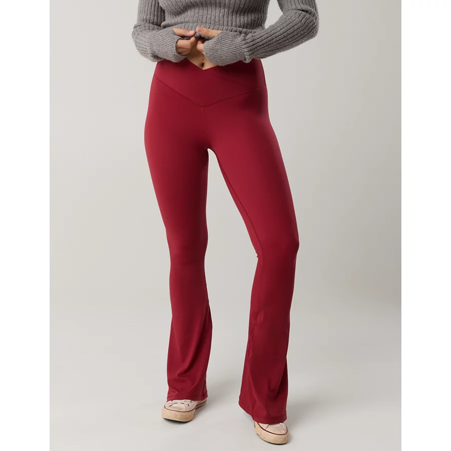 OFFLINE By Aerie Real Me High Waisted Crossover Flare Legging – Cherry Tart