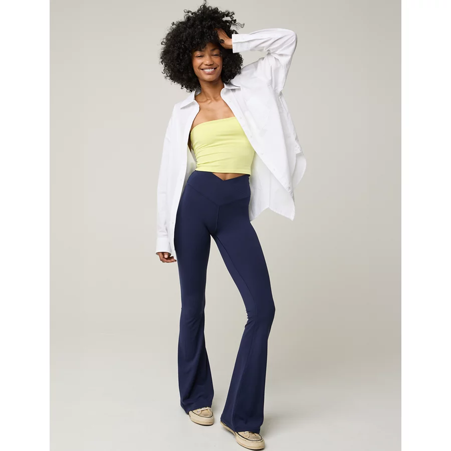 OFFLINE By Aerie Real Me High Waisted Crossover Flare Legging – Royal Navy