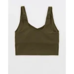 OFFLINE By Aerie Real Me Low Key Longline Sports Bra – Military Green