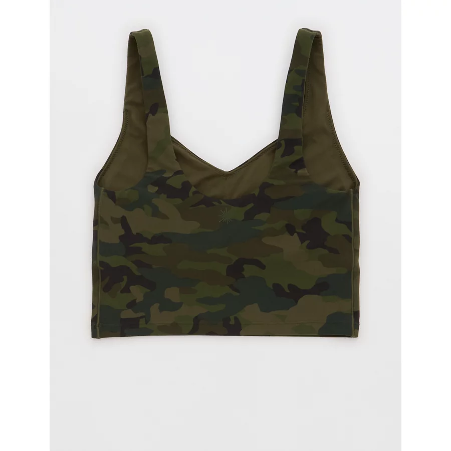 OFFLINE By Aerie Real Me Low Key Longline Sports Bra – Olive Daze