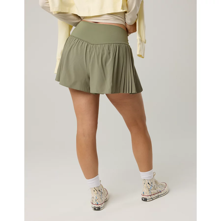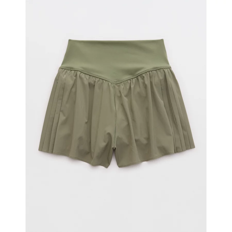 OFFLINE By Aerie Real Me Pleated Flowy Short – Olive Fun