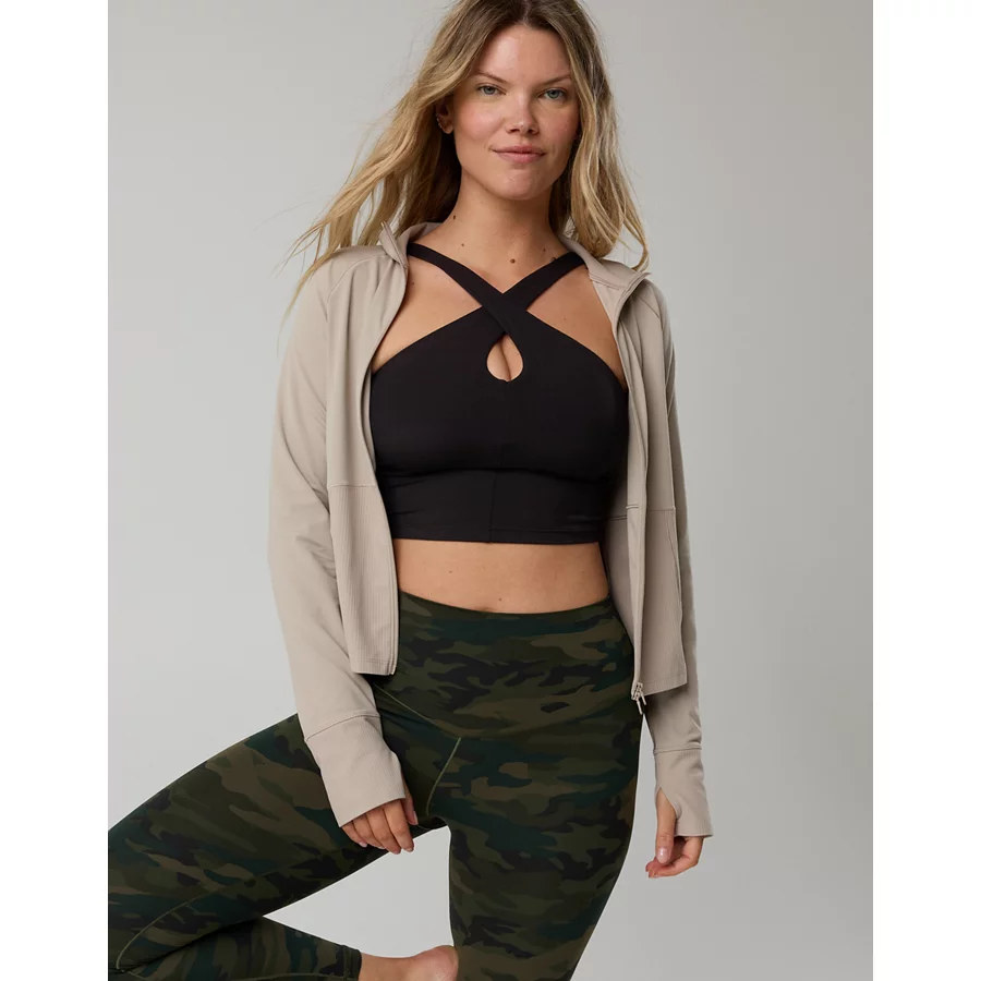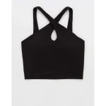 OFFLINE By Aerie Real Me XTRA Criss Cross High Neck Sports Bra – True Black