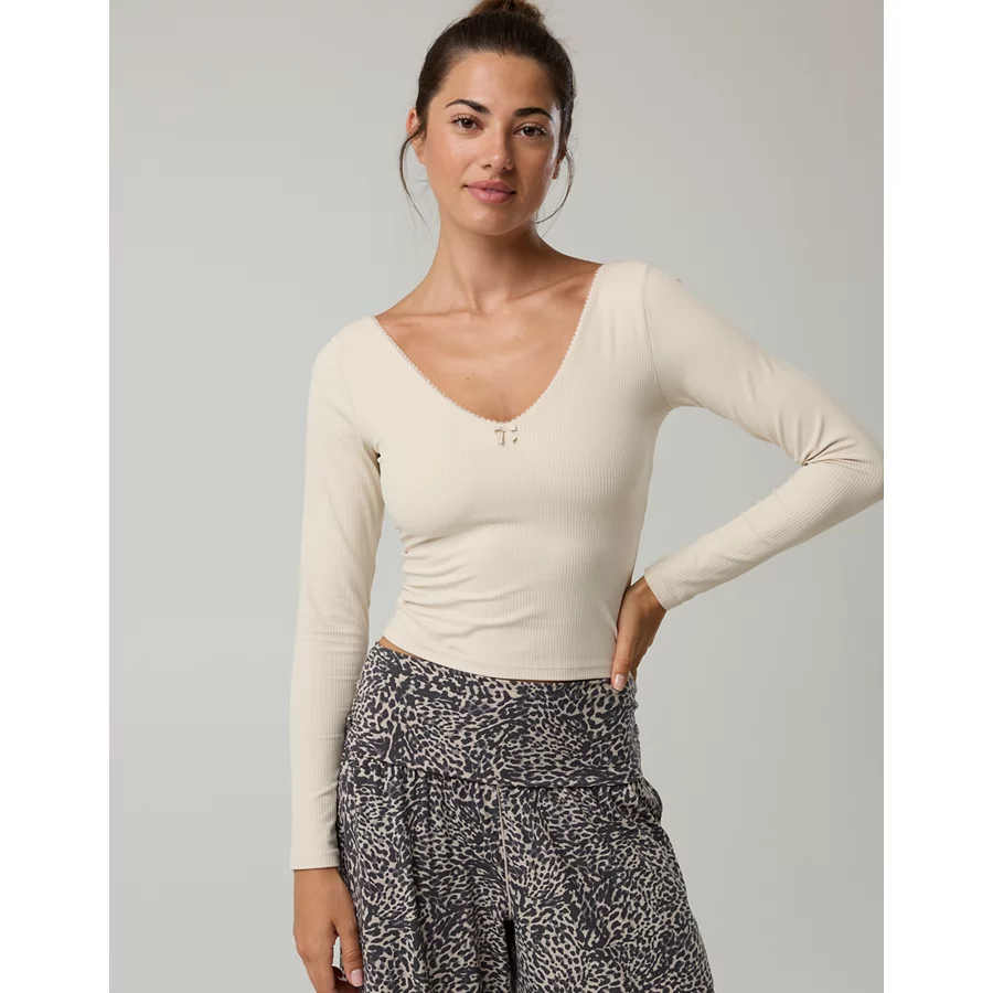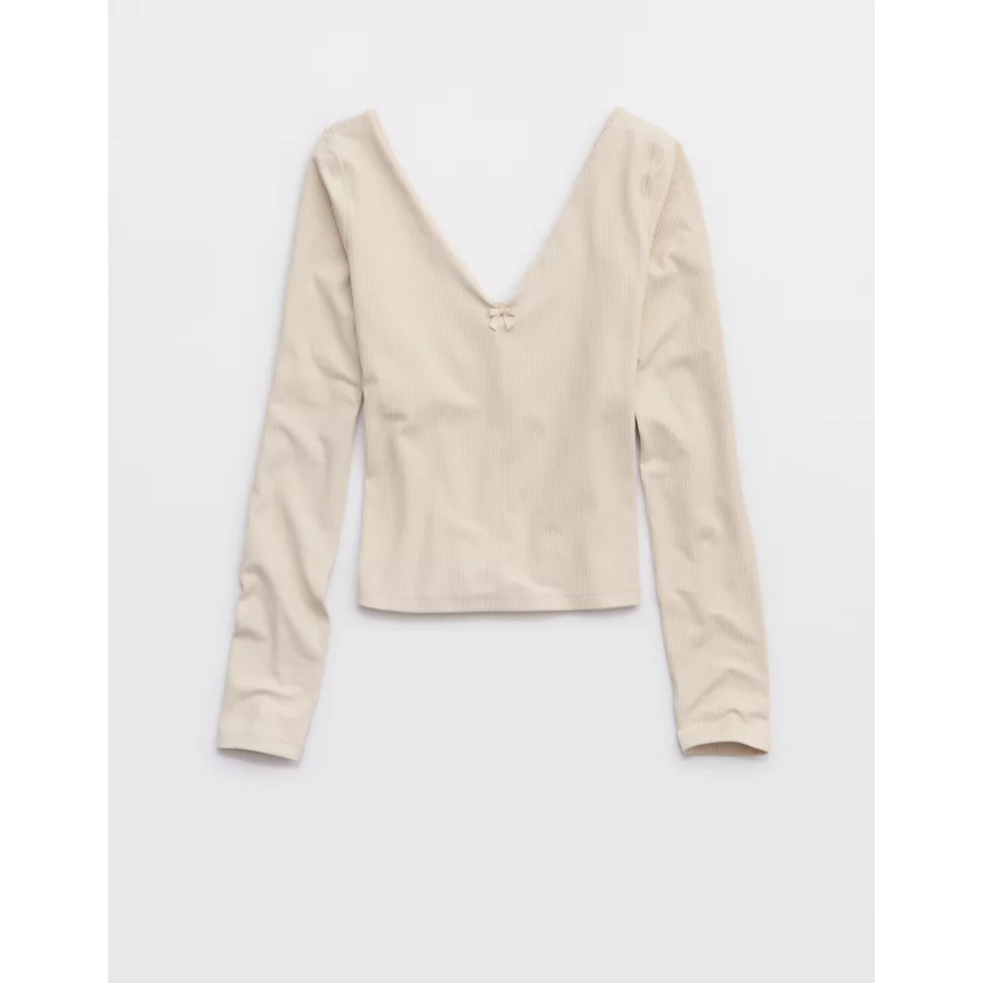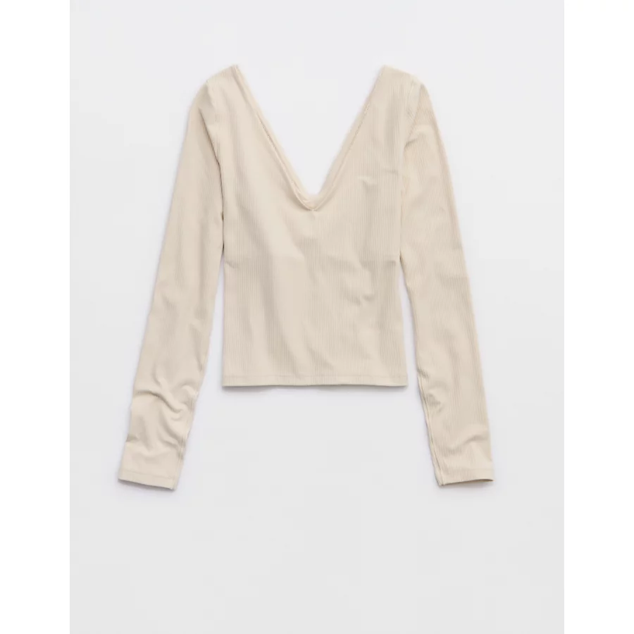 OFFLINE By Aerie Real Me XTRA Rib Open V-Neck T-Shirt – Cake Batter