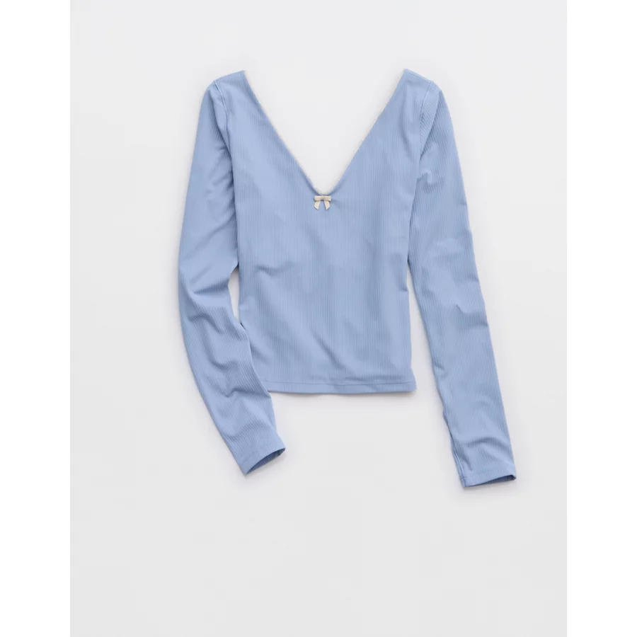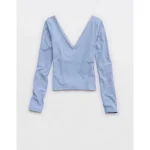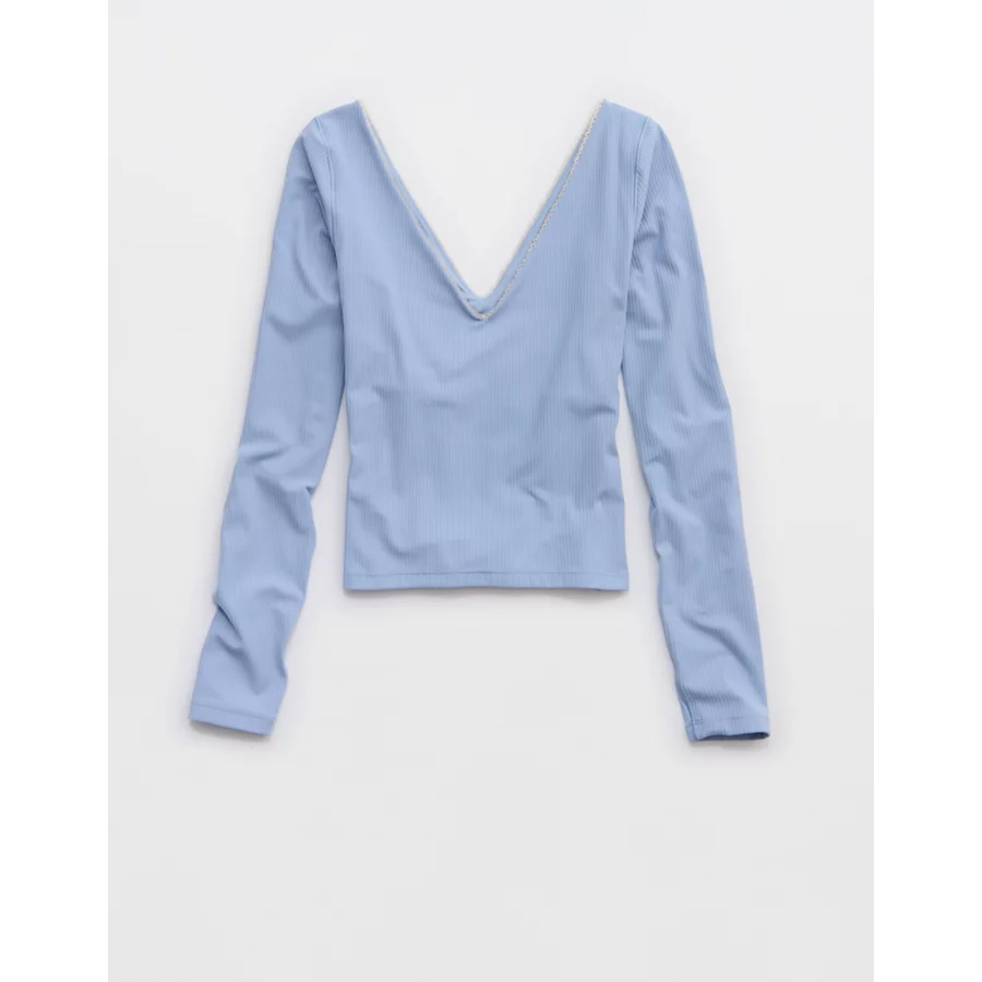 OFFLINE By Aerie Real Me XTRA Rib Open V-Neck T-Shirt – Monaco Blue