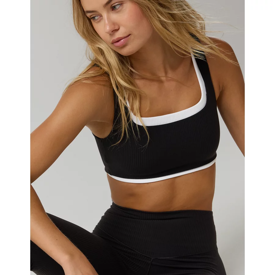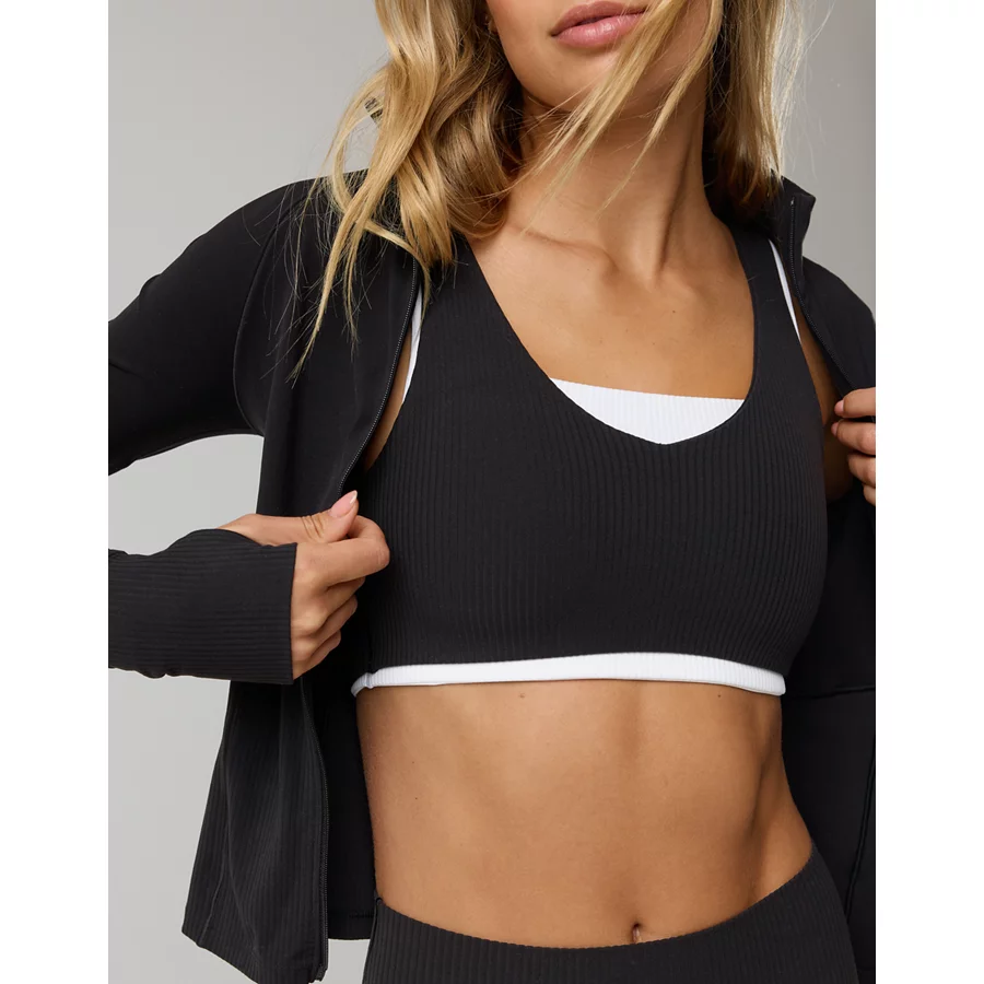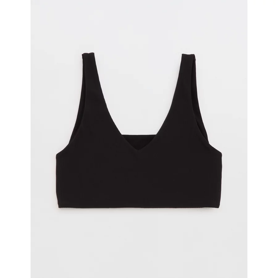 OFFLINE By Aerie Real Me XTRA Rib Switch Up V-Neck Sports Bra – True Black