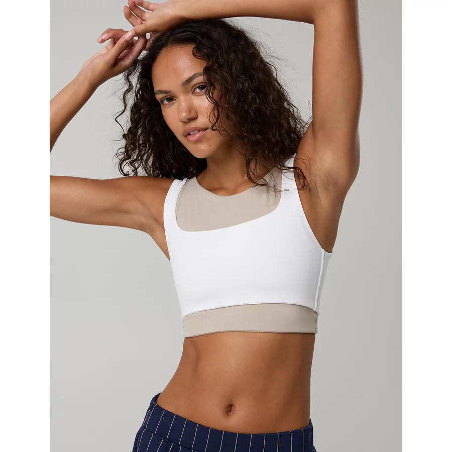 OFFLINE By Aerie Real Me XTRA Rib Switch Up V-Neck Sports Bra – White