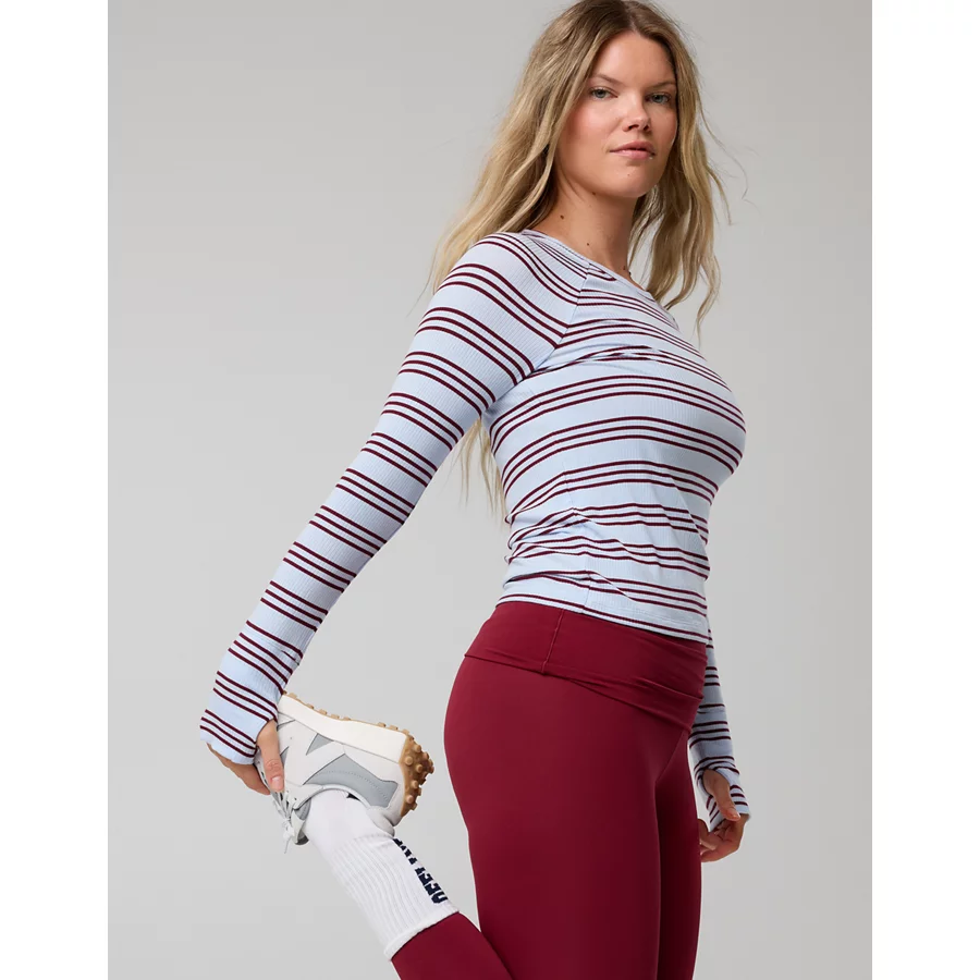 OFFLINE By Aerie Thumbs Up Fitted Ribbed T-Shirt – Eyelet Blue