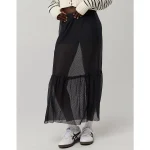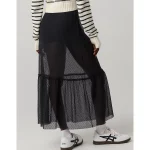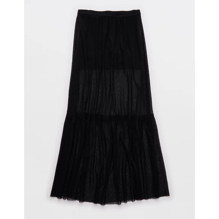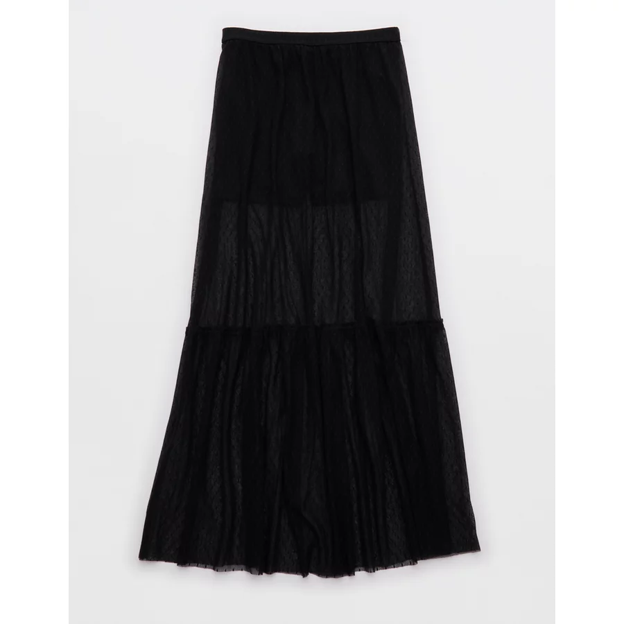OFFLINE By Aerie Tiered Dot Mesh Maxi Skirt – True Black