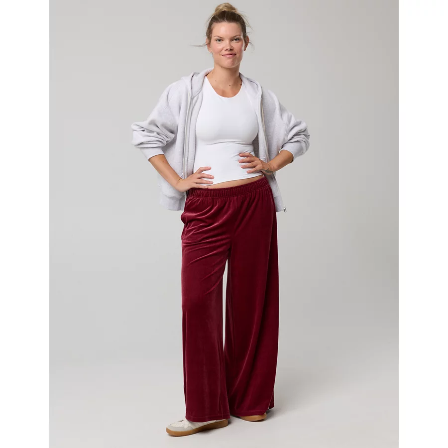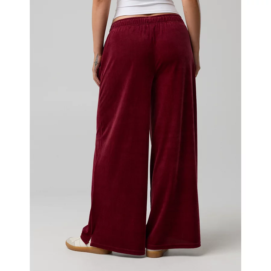 OFFLINE By Aerie Velour Rib Super Wide Leg Pant – Deep Cherry