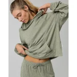 THE LOOK: Hoodie silhouette with puddle sleeves. Lightweight & slouchy. Front pocket.