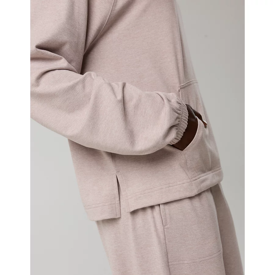 THE LOOK: Hoodie silhouette with puddle sleeves. Lightweight & slouchy. Front pocket.