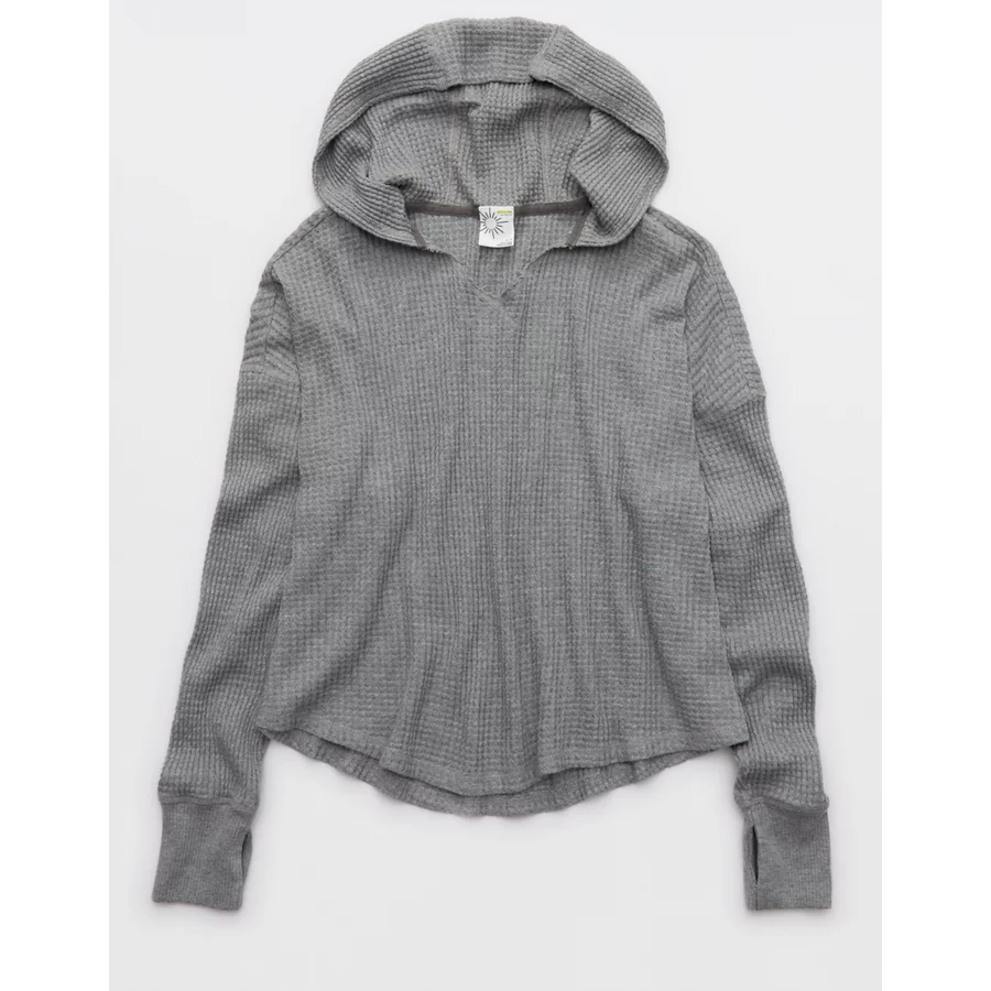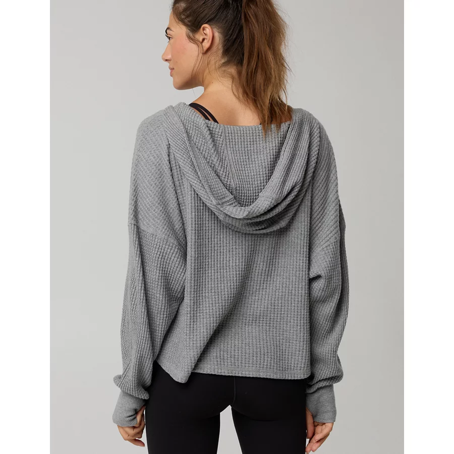 OFFLINE By Aerie Wow! Waffle Hoodie - Heather Frost
