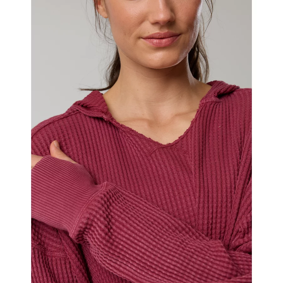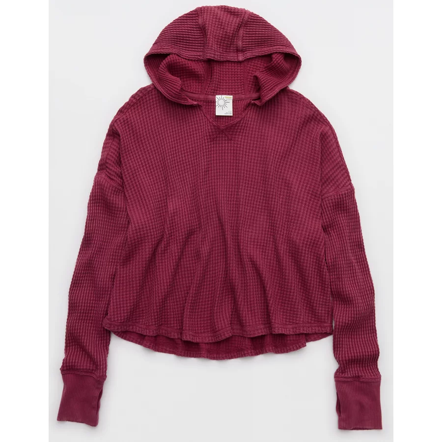 OFFLINE By Aerie Wow! Waffle Hoodie – Deep Cherry