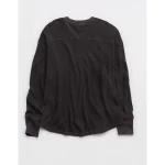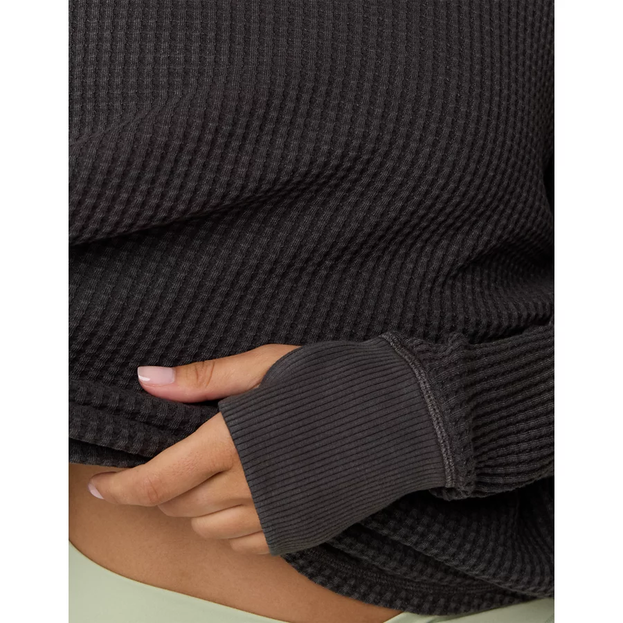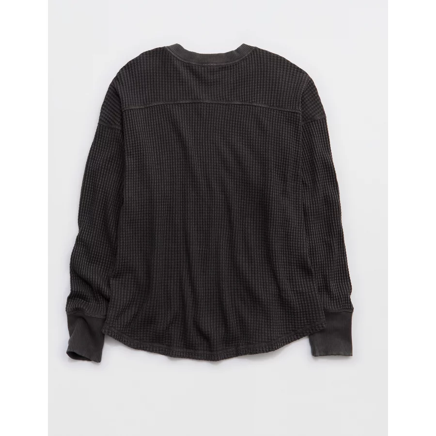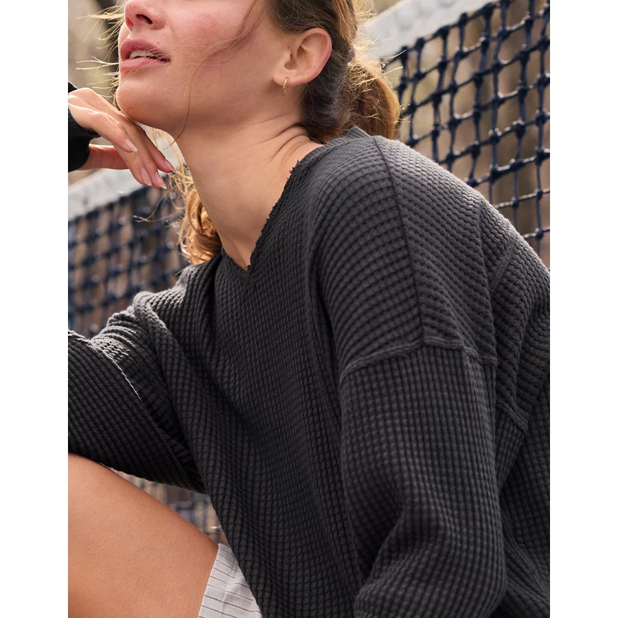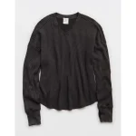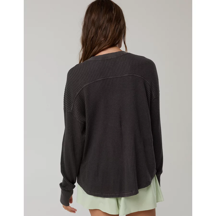 OFFLINE By Aerie Wow! Waffle Notch Neck Long Sleeve T-Shirt – Smoked Gray