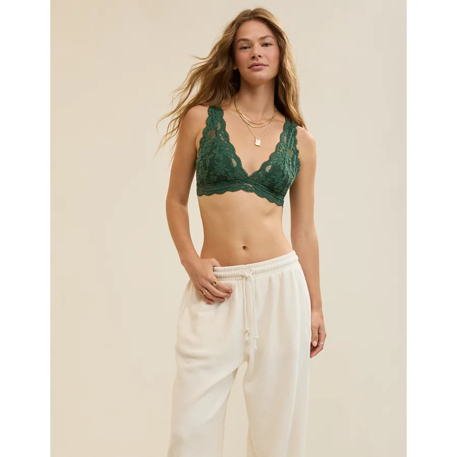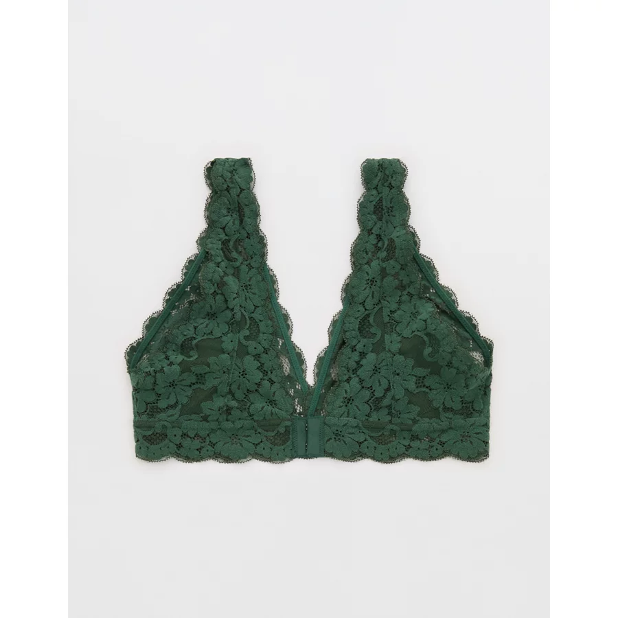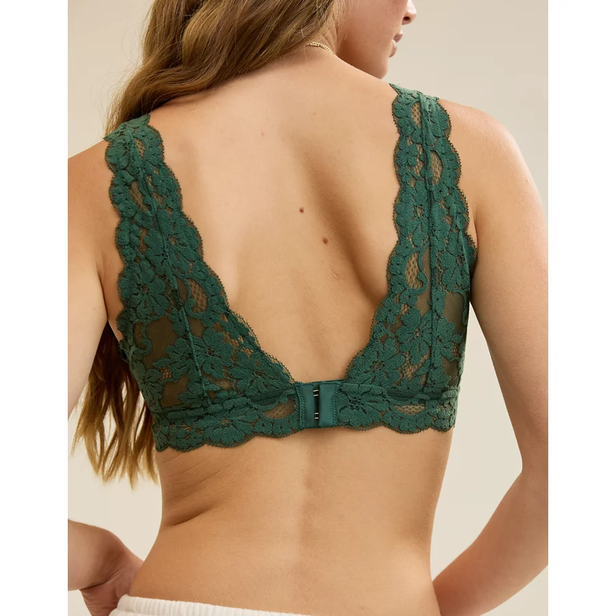 Show Off Chenille Lace Padded Plunge Bralette – Rugged Green