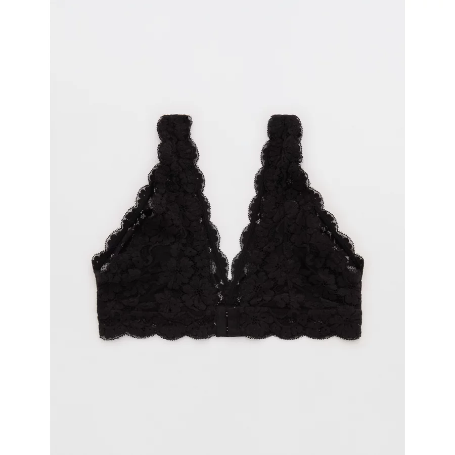 Show Off Chenille Lace Padded Plunge Bralette – True Black