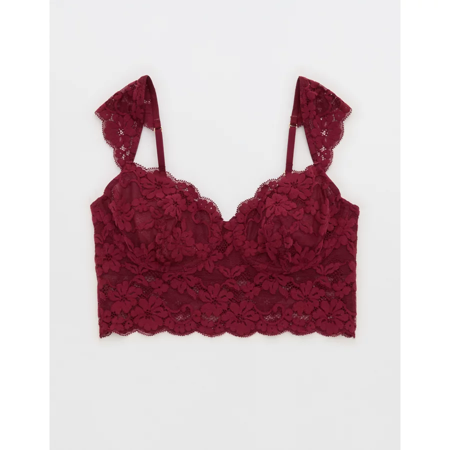 Show Off Chenille Lace Wireless Bralette – Deep Cherry