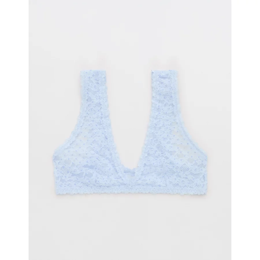 Show Off Flocked Vintage Lace Plunge Bralette – Eyelet Blue