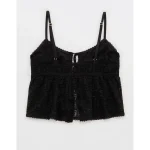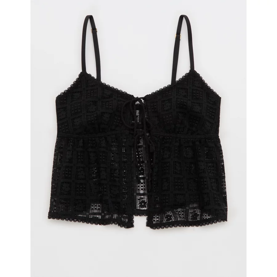Show Off High Tide Lace Tie Front Tank Top – True Black