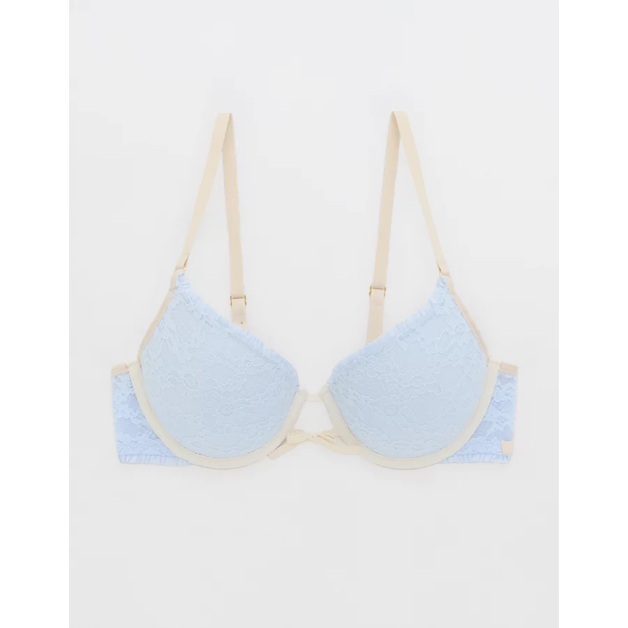 Show Off Vintage Lace Plunge Push Up Bra – Eyelet Blue