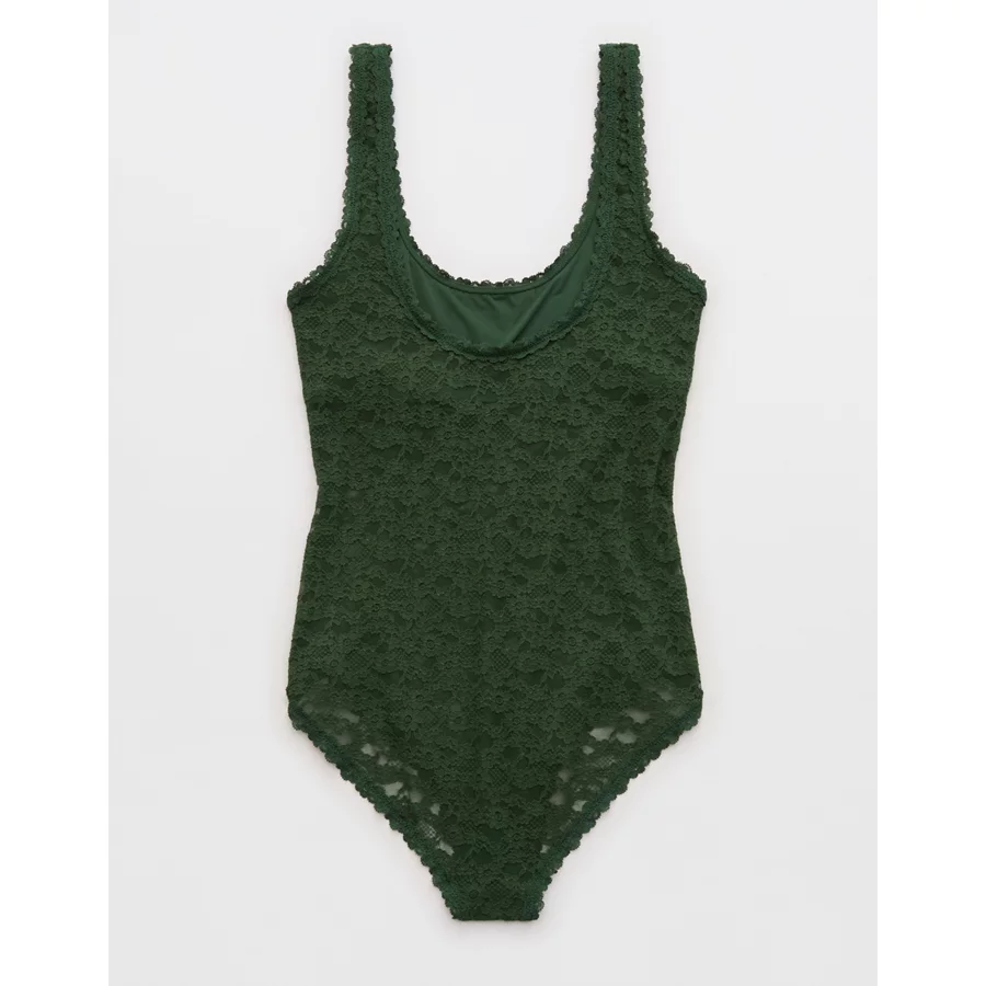 Show Off Vintage Lace Scoop Bodysuit – Rugged Green