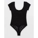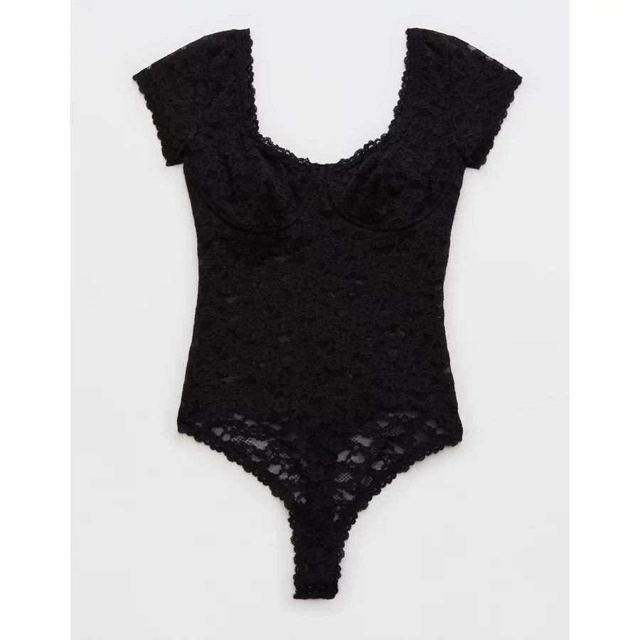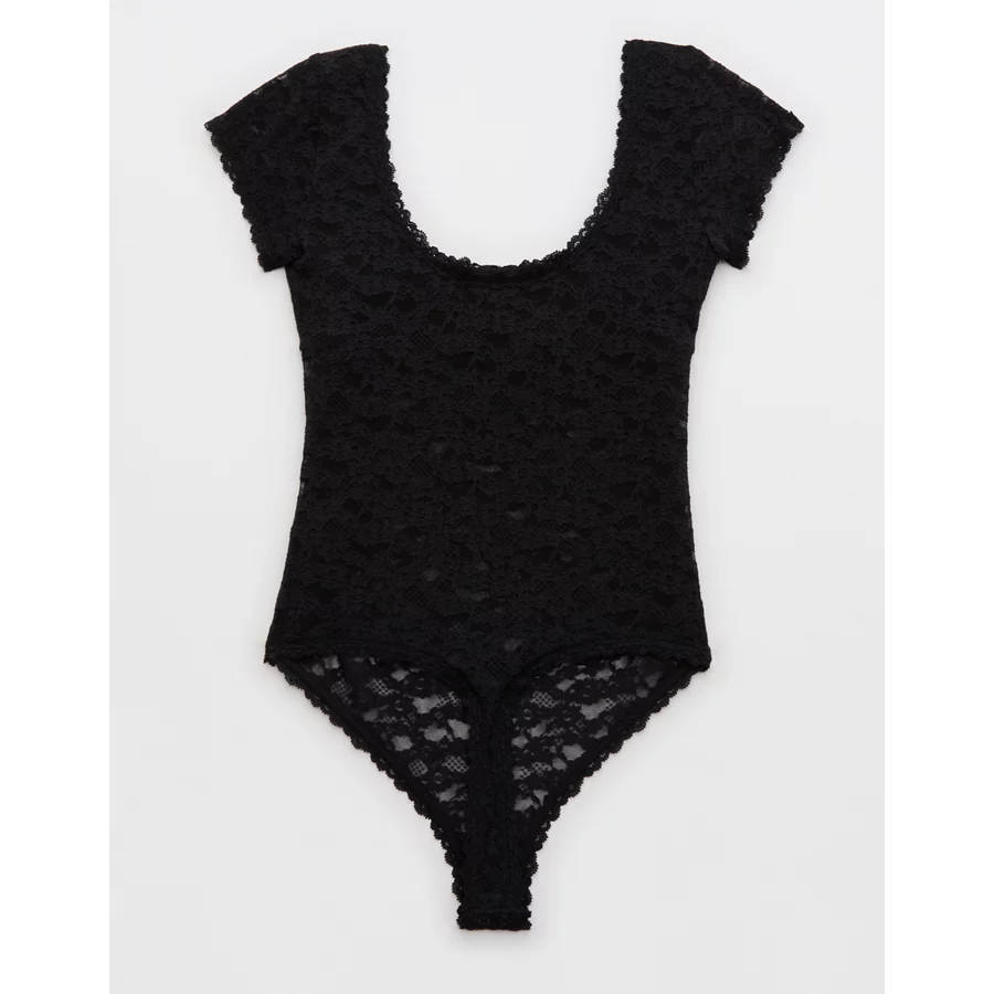 Show Off Vintage Lace Short Sleeve Bodysuit – True Black