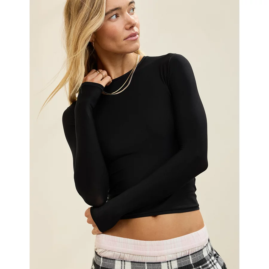 SMOOTHEZ Long Sleeve Crew T-Shirt – True Black
