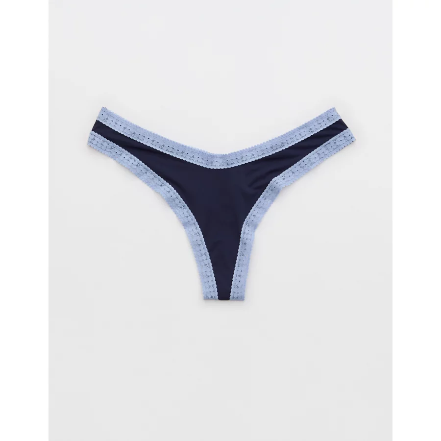 SMOOTHEZ Microfiber Lace Thong Underwear – Monaco Blue