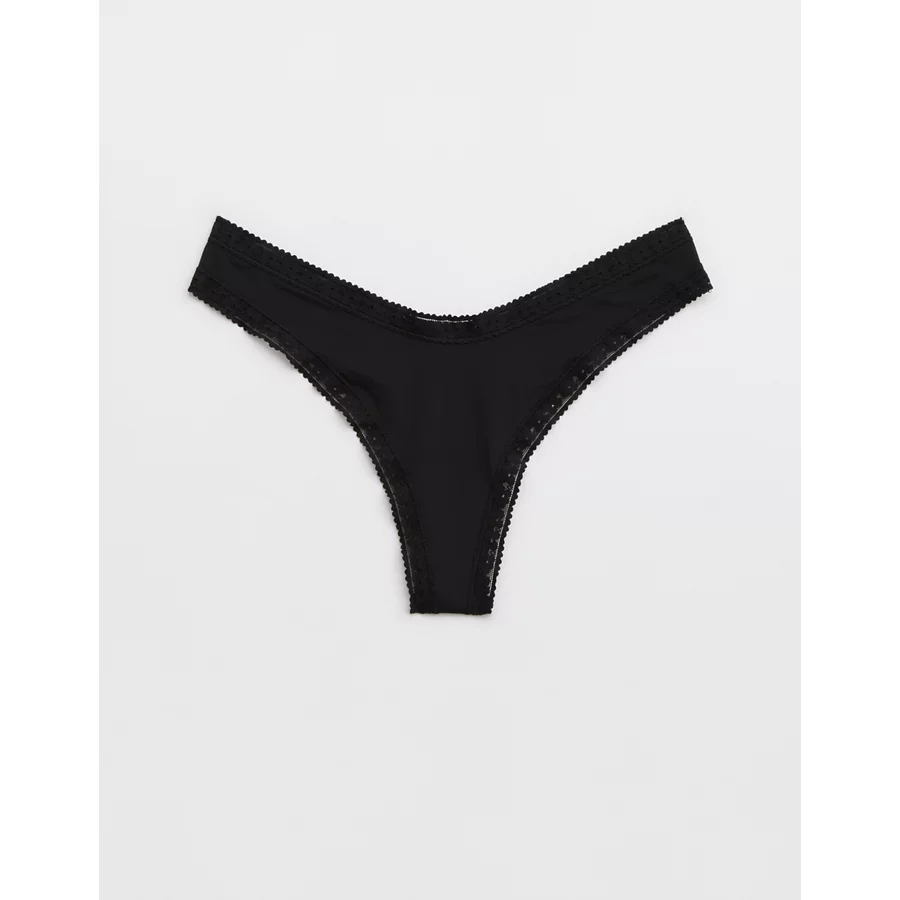 SMOOTHEZ Microfiber Lace Thong Underwear – True Black