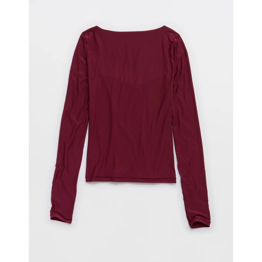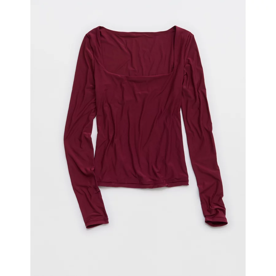 SMOOTHEZ Square Neck Long Sleeve T-Shirt – Deep Cherry