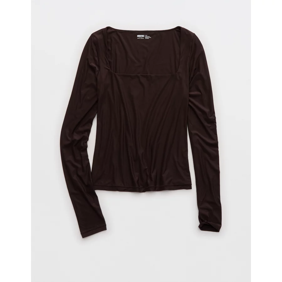 SMOOTHEZ Square Neck Long Sleeve T-Shirt – Deep Earth