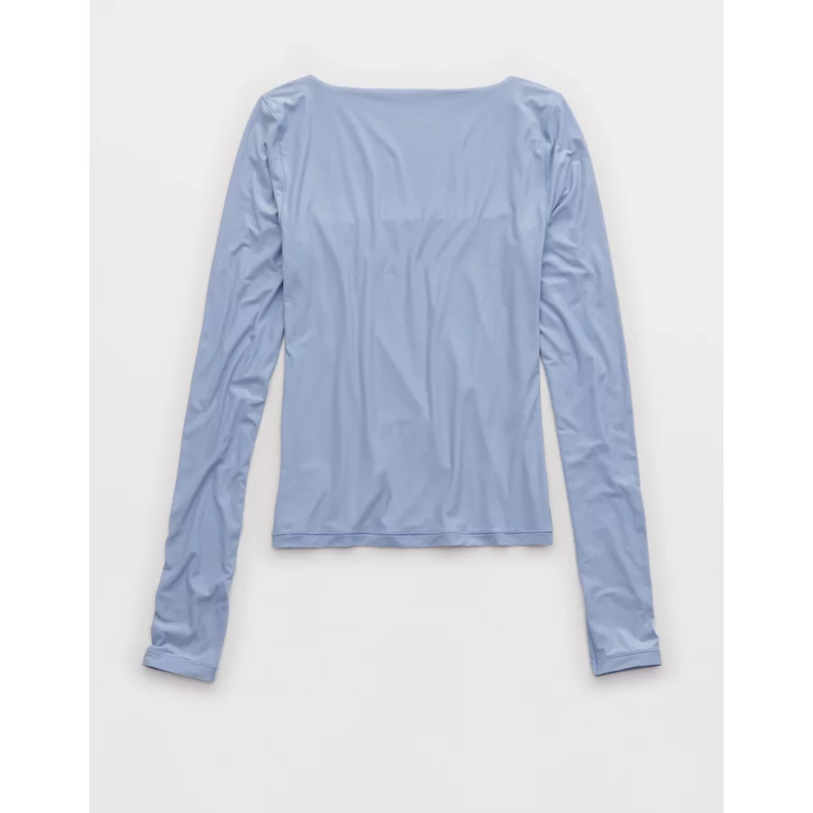 SMOOTHEZ Square Neck Long Sleeve T-Shirt – Monaco Blue