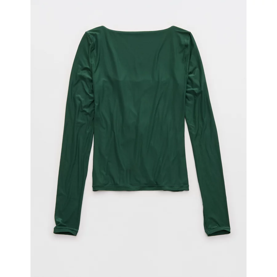 SMOOTHEZ Square Neck Long Sleeve T-Shirt – Rugged Green