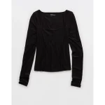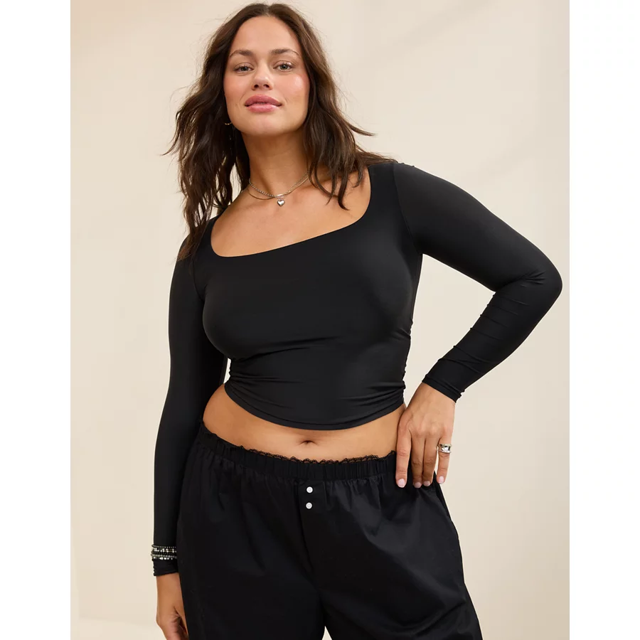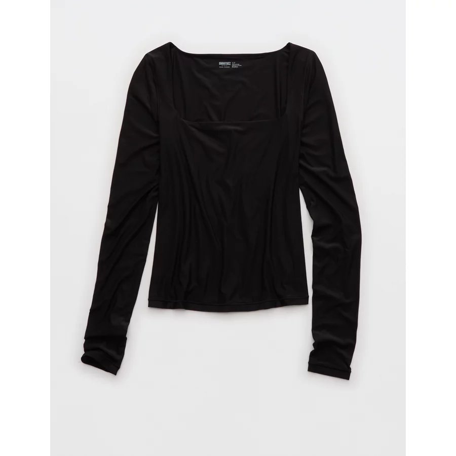 SMOOTHEZ Square Neck Long Sleeve T-Shirt – True Black