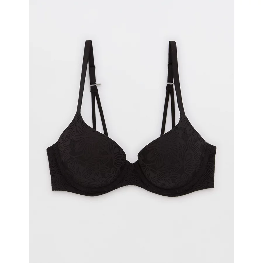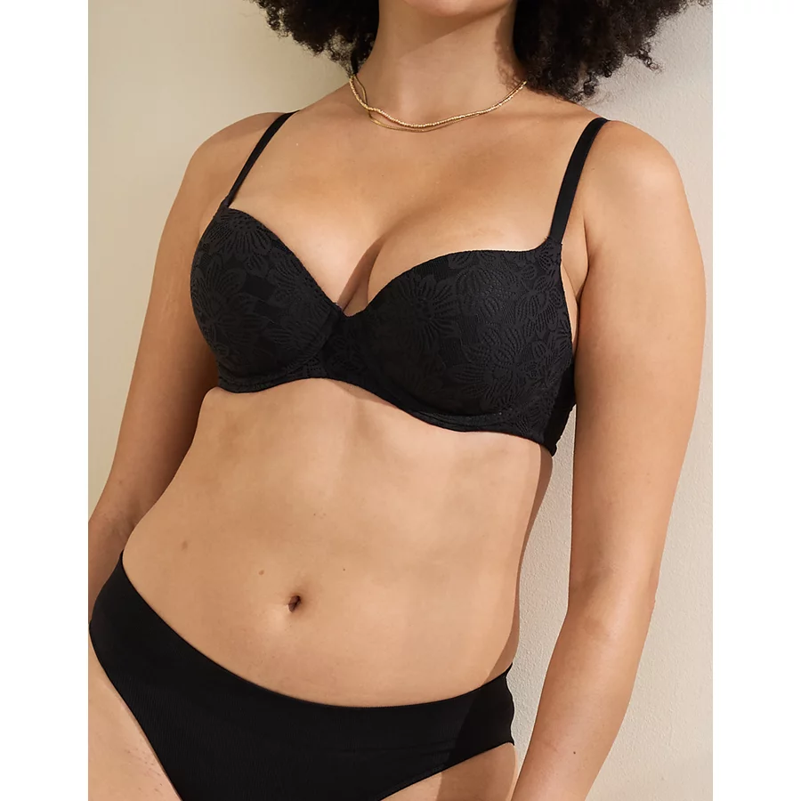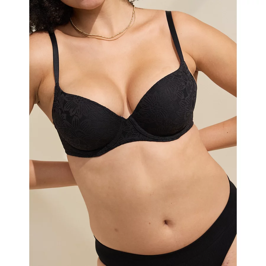 Sunnie Bloom Lace Demi Push Up Bra – True Black