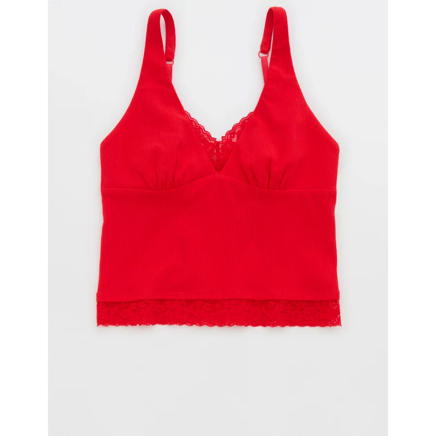 Superchill Cotton Rib Vintage Lace Tank Top – Bright Red