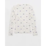 Real Good Everyday yarnRolled necklineRibbed trim on cuffs and hemPointelle deets and split cuffs on the sleevesThis style is heathered