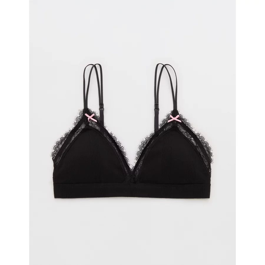 Superchill Pointelle Padded Triangle Bralette – True Black