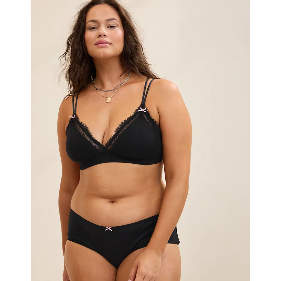 Design: Femme lace trim & dainty bow details. XL/XXL sizes made with extra support!
